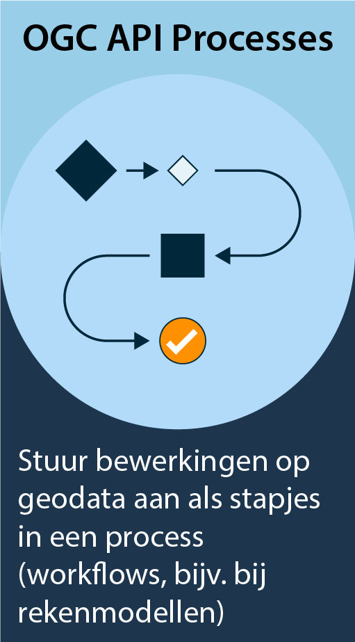 Elke bewerking die in een GIS wordt gedaan, kan je in principe ook via een OGC API Processes laten uitvoeren. Voordeel voor gebruikers van zo’n OGC API Processes is dat zij geen speciale GIS expertise nodig hebben om er gebruik van te kunnen maken.